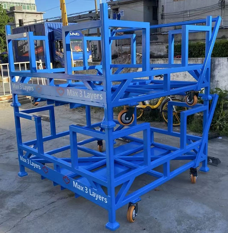 Storage rack bases can be stacked, with a general recommendation not to exceed three layers.