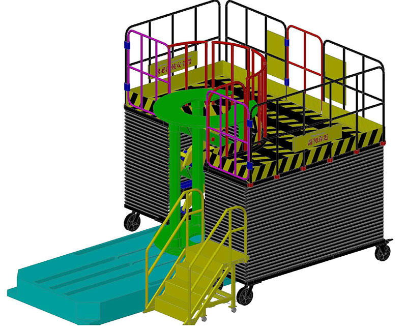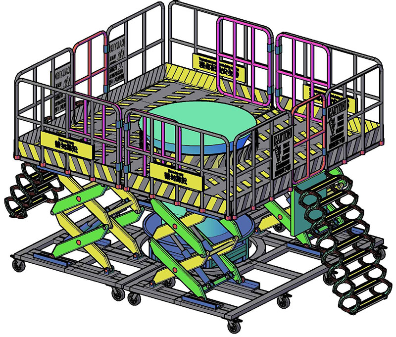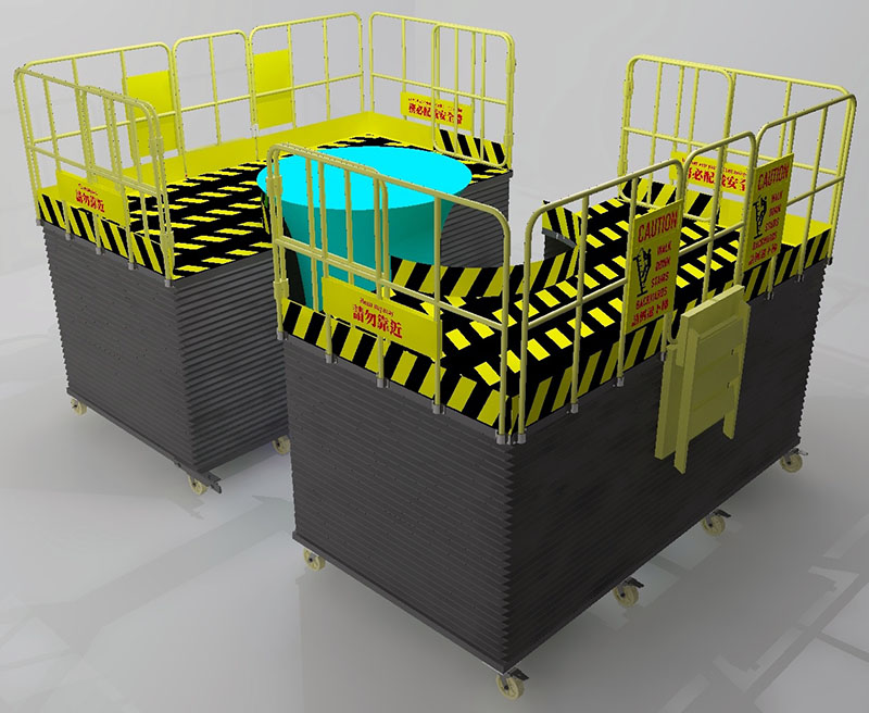 The use of hydraulics ensures smoother lifting and lowering operations, with an accordion-style protective cover fitted around the perimeter.