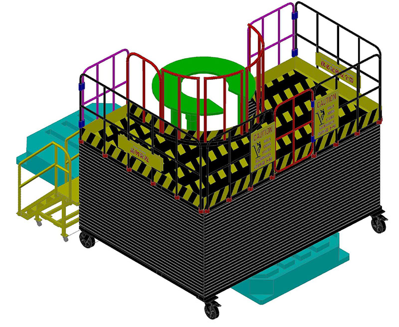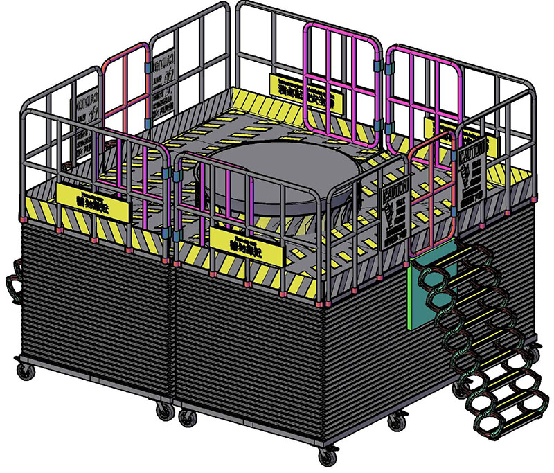 The use of hydraulics ensures smoother lifting and lowering operations, with an accordion-style protective cover fitted around the perimeter.